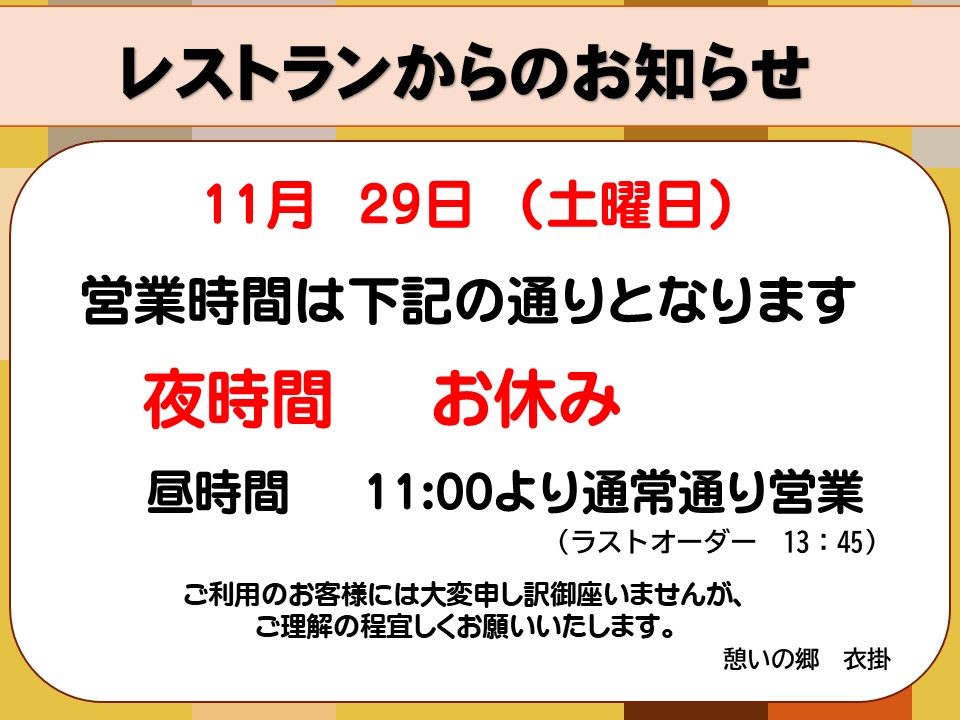 尚、お昼の営業につきましては通常通りAM11時より営業致します。